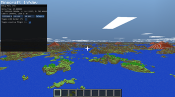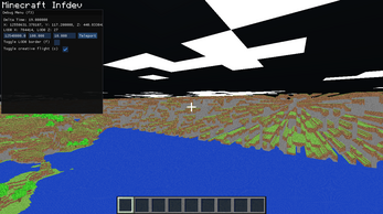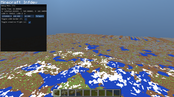 also unrelated but what do you think about the far lands and the fact we are able to anticipate the far lands from multiple kilometers away too, that's what really excited me the most about making an LOD based Minecraft alpha/infdev, and later when i will add the terrain of Alpha (this is from infdev 2010-03-27) we will both be able to see the far lands from kilometers away and also the monoliths from kilometers away
